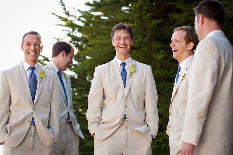 Embrace the casual feel of your celebration as he appears in a chocolate notched lapel or two buttoned peaked lapel tux. Daring dudes are opting for bold designs and colored vests, ties and cummerbunds. Think metallic mossy green, fuchsia herringbone, lemony yellow or bold violet.