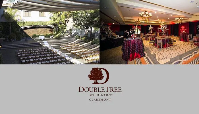 The Doubletree by Hilton Claremont boasts three gorgeous ballrooms, with a range in capacity from as few as 50 guests to 250! Exquisite chandelier lighting accented with warm colors only begin to describe our location. Continuously offering competitive pricing, flexible time frames and of course a most attentive staff, The beautiful Doubletree by Hilton Claremont is the perfect location to celebrate your wedding and reception. 12,000 sq. ft. of event space, including an outdoor courtyard.