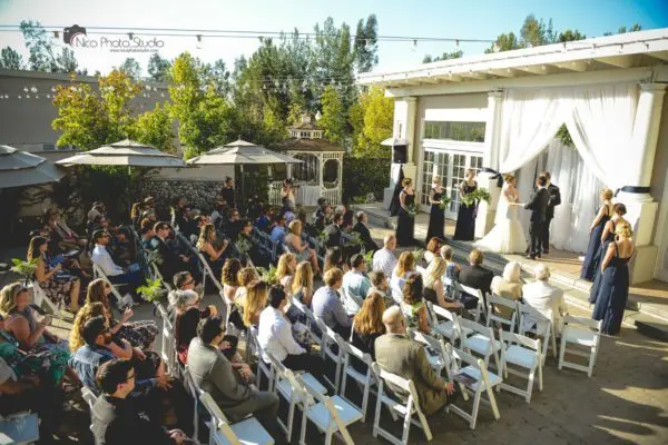 Located in the hills of Trabuco Canyon, Dove Canyon Courtyard is a beautiful outdoor garden wedding and reception venue. The courtyard is over 17,000 sq. ft. of majestic elegance. Dove Canyon Courtyard offers a beautiful garden backdrop allowing you to compose and create your event as you have always imagined it. Come fall in love with our location’s bridal suite, hillside cottage and gazebo to use as you see fit. Surrounding your event will be thousands of white twinkle lights overhead and in the trees. The sounds of the waterfall and fountain will soothe the hearts of your guests as they stroll on the cobblestone pavers, and enjoy the storybook wishing well and the blooming roses located throughout the venue.