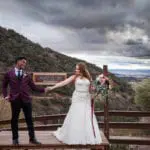 Beautiful waterfall, pond and bridge leading to ceremony deck overlooking the expansive valley below