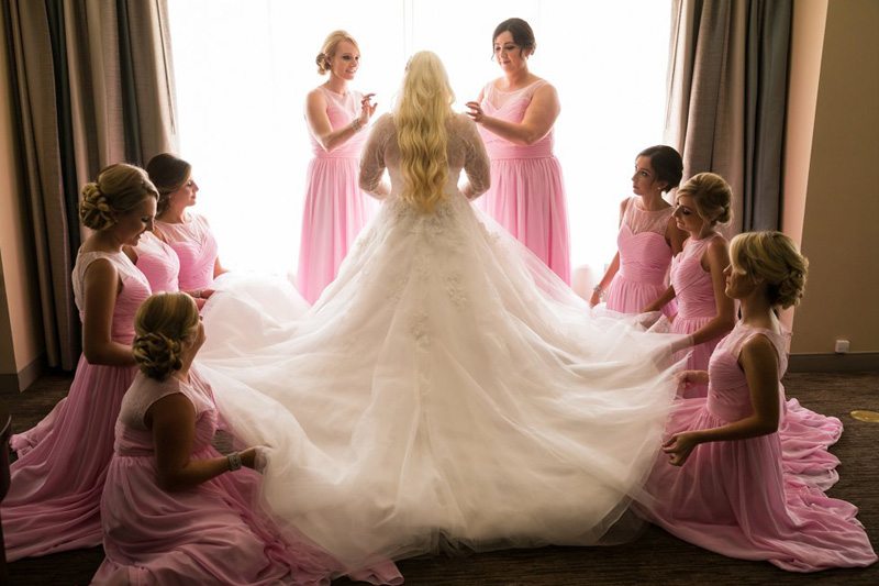Escorted by her lovely bridesmaids, Courtney went to see Benjamin and the two of them shared their first look together. After some gorgeous shots with the Rolls Royce, the whole bridal party, along with the Prince Weddings crew, headed over to Mariners Church. A truly stunning and unique venue, Mariners Church was the perfect place for Benjamin and Courtney to say “I do.” After the ceremony concluded, friends and family headed to The Center Club, located by Segerstrom Center for the Arts, for drinks, dancing, fun, and to celebrate Courtney and Ben’s special day.